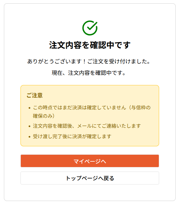 注文が完了すると、まずは「注文内容を確認中」というステータスになります。