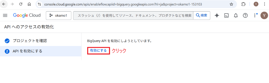 手順3. BigQuery API を有効にする