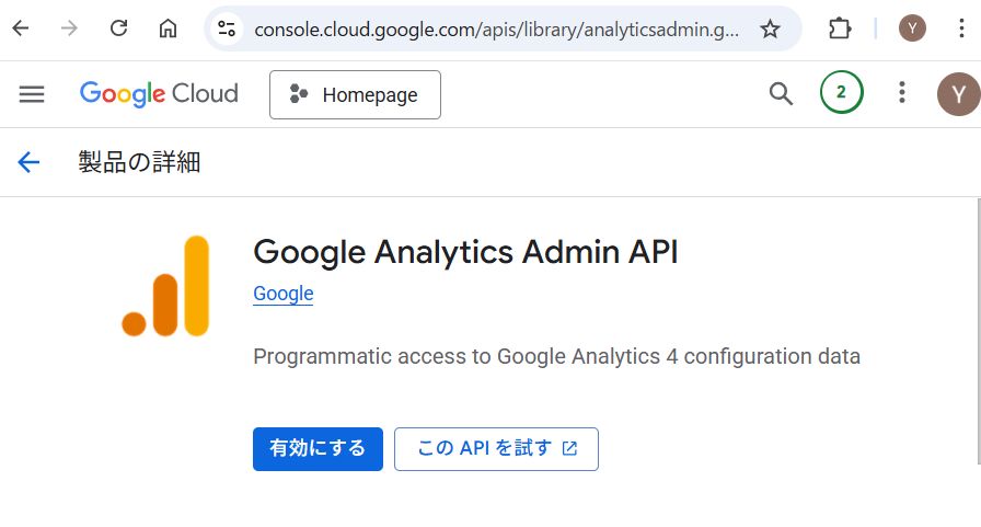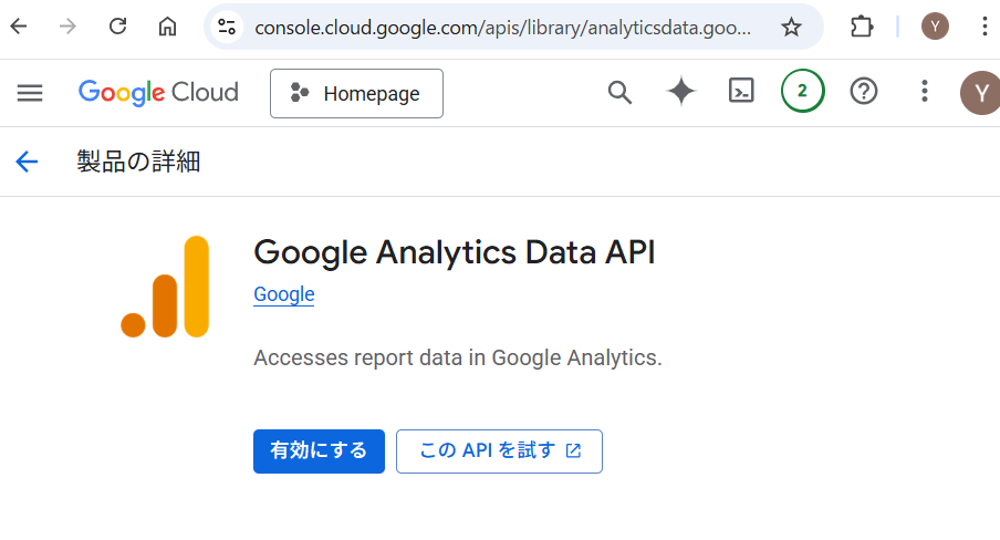 画像のようにそれぞれのAPIのページで「有効にする」ボタンをクリックしてください。