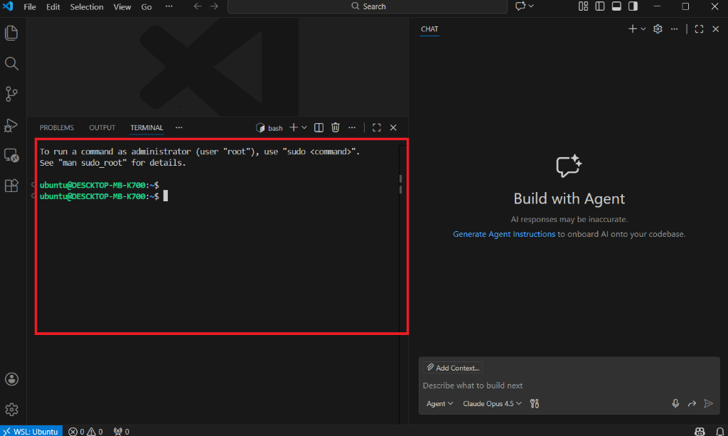 ⚠️ 注意: 接続後、左下の表示が「WSL: Ubuntu」に変わっていることを確認してください。